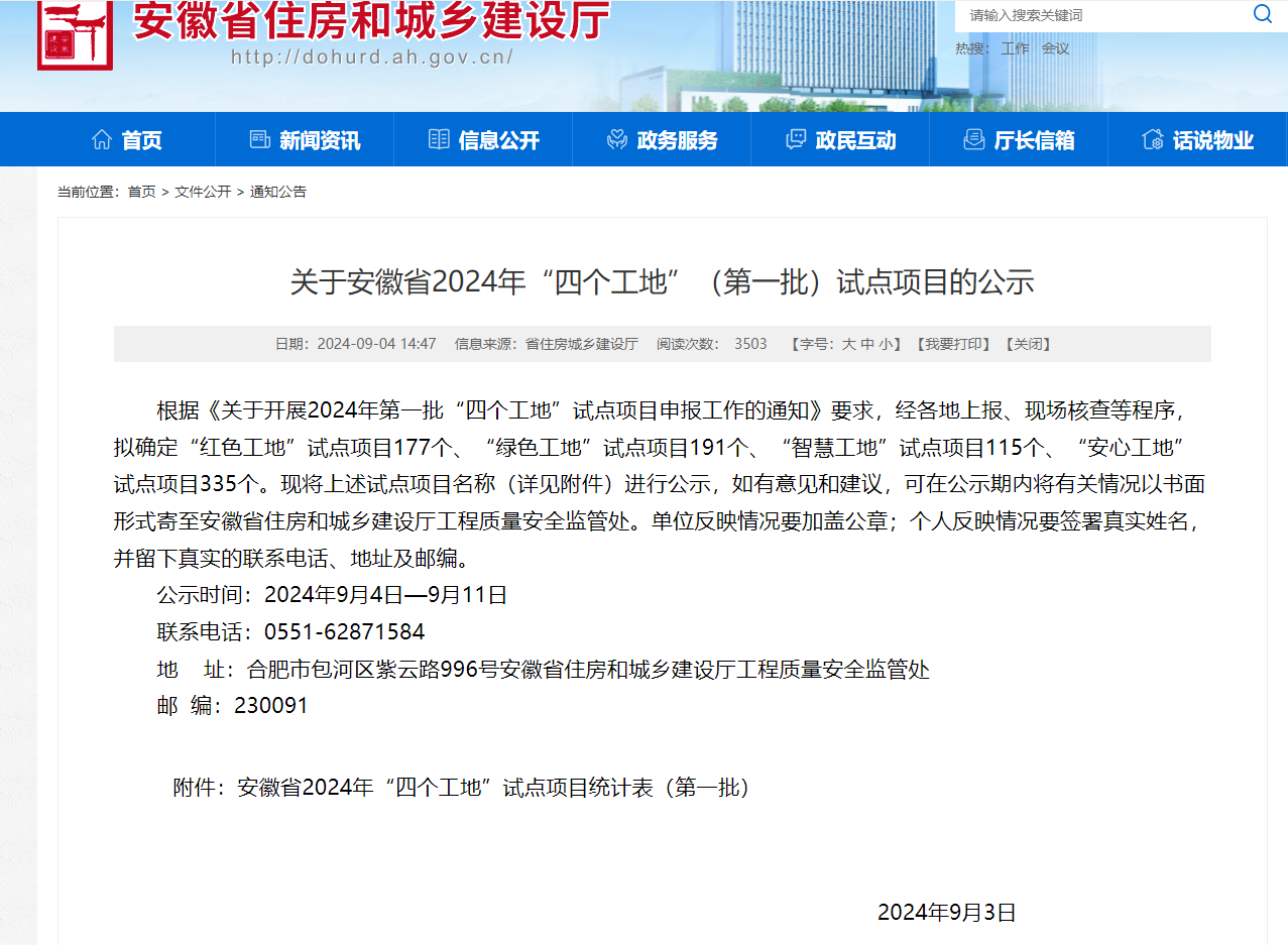 公司項目榮獲安徽省2024年“四個工地”(第一批)試點項目的綠色工地