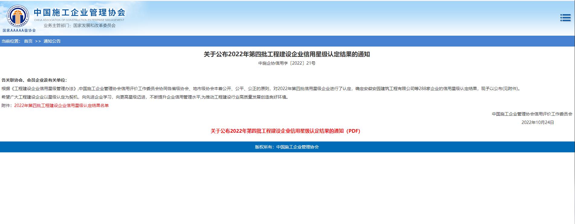 2022年第四批工程建設企業信用星級認定結果名單